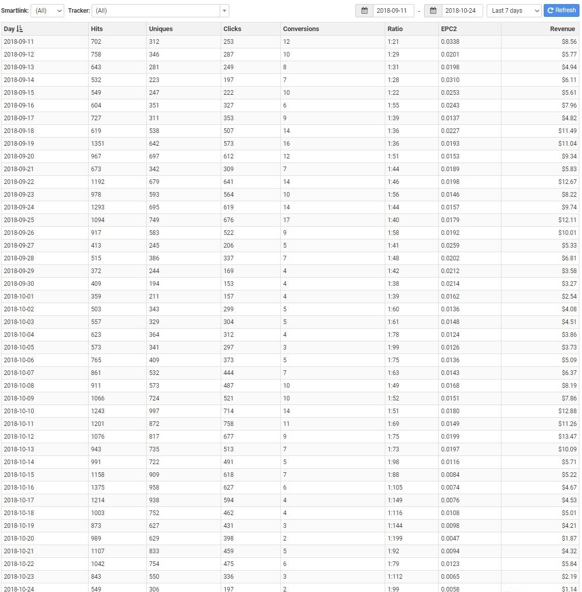 Рада предложить всем вам мой новый курс по работе с самой интересной и большой соц.сетью интернета – Facebook! Данную тему я придумала давно, но как к ней подступиться, это был самый серьезный вопрос потому, что вопрос автоматизации тут выходит на первый план. Однако мне удалось решить все проблемы связанные с этим вопросом! Тесты темы начались еще летом но, по настоящему, тема показала себя только в сентябре. Тематика – дейтинг! Я считаю что в данной тематике проще всего заработать, а так же проще всего научить кого-то зарабатывать. Вот мои результаты за последние полтора месяца работы: По традиции сразу же предупреждаю, что мои результаты в любом случае будут отличаться от ваших либо в большую сторону, либо в меньшую. Всё как в любой теме зависит от вас! Кто внимательный может заметить, что и трафик и доход у меня приходил волнообразно, дело в том, что над темой не нужно сидеть и горбатиться каждый день, но если ее забросить на некоторое время, как сделалала я, особенно последнюю