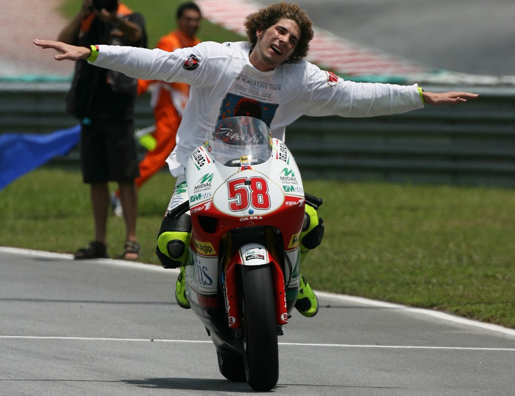 на гонке Гран-при MotoGP в Малайзии погиб известный итальянский мотогонщик Марко Симончелли, потеряв управление мотоциклом на одном из поворотов. Его байк перевернулся, и пересеча трассу упал под колеса американского гонщика Колина Эдвардса. Симончелли несколько раз перевернулся и потерял шлем с головы. Был срочно госпитализирован, однако, травмы полученные от других мотоциклов в области груди, головы и шеи оказались фатальными. Похороны состоялись в Кориано, регион Эмилия-Романья. 24-х летний гонщик погиб 23 октября https://vk.com/video-32275859_167243534