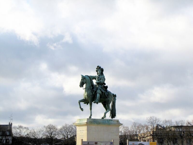 Скульптура этого скромняги Людовика XIV, создавшего немыслимые интерьеры Версаля, стоит перед дворцовыми воротами и приветливо помахивая перьями на шляпе, смотрит на входящих.