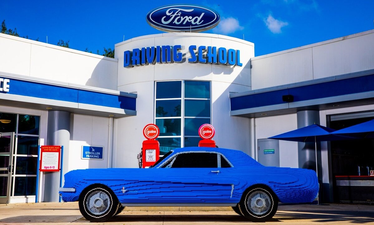 В 2016 году в тематическом парке развлечений LEGOLAND Florida в зоне аттракциона "Автошкола Ford" была установлена полноразмерная копия легендарного автомобиля Ford Mustang 1964 года. Модель была впервые показана на фестивале Indianapolis Motor Speedway во время празднования 40-й годовщины клуба Mustang Club of America в сентябре 2015 года. Ford Mustang был представлен в 1964 году и стал одной из самых удачных премьер в истории автомобилестроения. Именно эту, самую первую модель "Мустанга", моделисты Lego Master Builders совместно с инжинерами Ford воссоздали из 194 900 кубиков LEGO и DUPLO, потратив на постройку более 1200 часов. Детали конструктора базируются на алюминиевом шасси, массой 341 килограмм, при общей массе модели - 766 килограмм. Длина автомобиля составляет 4,5 метра, ширина — 1,8 метра, высота — 1,2 метра. Все элементы масштабной копии, такие как шильдики, решетка радиатора и колеса, идеально повторяют элементы культового оригинал. Даже оттенок синего, который испол
