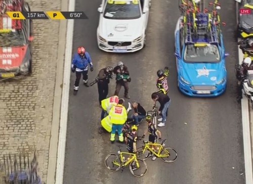 В воскресенье 7 апреля 2019 года состоялась вторая монументальная гонка велосезона - Тур Фландрии. Гонщики начали свой день в Антверпене, чтобы преодолев 270 километров финишировать в Ауденарде. На пути их ожидали многочисленные «хеленгены», включая тройное прохождение Oude-Kwaremont, включая две связки с легендарным Paterberg. Последнее прохождение связки ожидалось за 13 километров до финиша. Гонка началась достаточно спокойно - основная группа позволила сформироваться отрыву из 4 человек: Уго Холл (Astana), Дамьен Тузе (Cofidis), Кеннетт ван Рой (Sport Vlaanderen) и Йеспер Ассельман (Roompot-Charles). Преимущество беглецов достигало 9 минут, а первые признаки активности пелотона в попытке нагнать отрыв начались лишь через 70 километров после старта (200 км до финиша). За 157 километров до финиша в хвосте основной группы случился завал, в котором пострадал прошлогодний победитель Тура Фландрии Ники Терпстра. После падения он остался лежать на асфальте. Как выяснилось поз