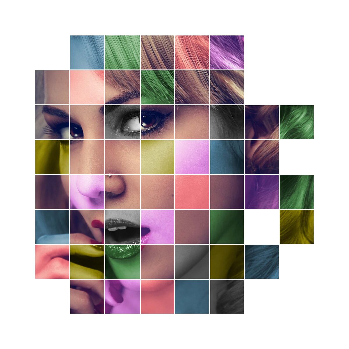 Повторите предыдущие шаги, чтобы раскрасить другие квадраты. Так же с помощью корректирующего слоя Цветовой тон/Насыщенность (Hue/Saturation) вы можете обесцветить некоторые квадраты. Для этого перетащите ползунок Насыщенность (Saturation) влево.