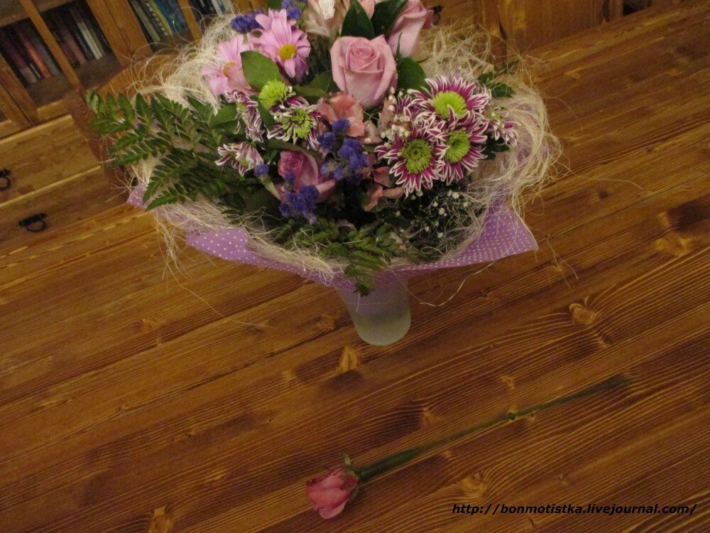 Все остальные (всего в букете 5 роз, да и не только розы) на своих "ножках". А тут просто "протез"...