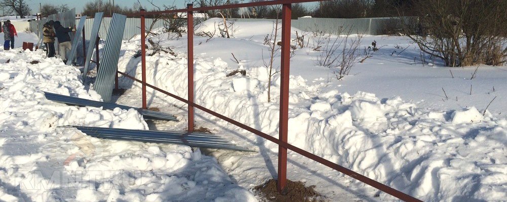 Технология строительства забора зимой подробно описана в нашем блоге, в статье «Особенности установки забора в зимнее время года».