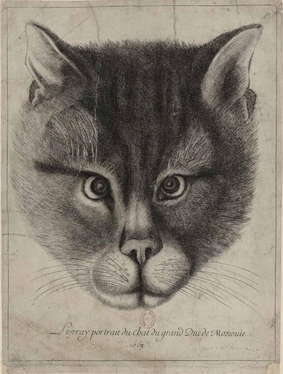 Этот эстамп с кошачьей физиономией датирован 1663-м годом и хранится в Национальной библиотеке Франции.