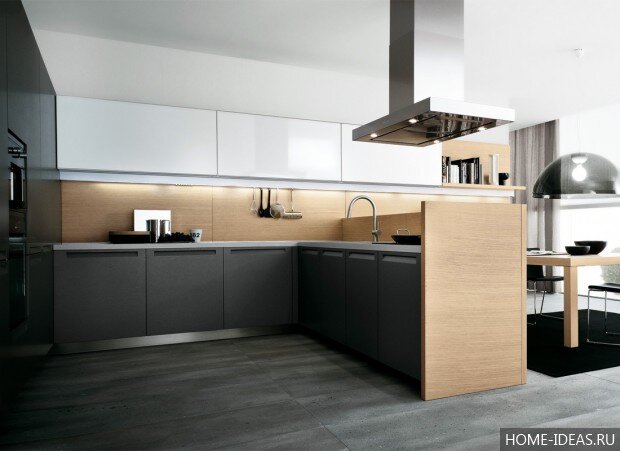 13. В прямоугольной кухне расставлять мебель нужно «углом», так вы добьетесь большей функциональности на меньшей площади.