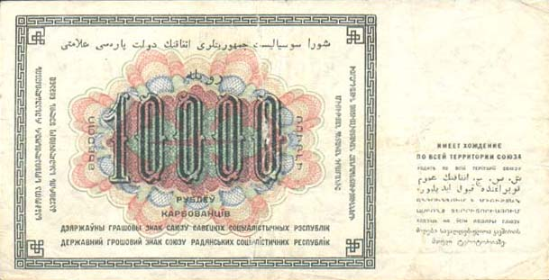 Рубль СССР (или Советский рубль) — денежная валюта СССР с 1923 года до 26 декабря 1991 года. 1 рубль равен 100 копейкам. Рубль был выпущен еще в 1919 году в виде кредитного билета. В СССР, купюры до 10 рублей, с 1924 года и до 1992 года назывались Государственными казначейскими билетами, а банкноты выше 10 рублей — Билетами Государственного Банка СССР Советский рубль 1923 года: Советский рубль 1924 года: Советский рубль образца 1934 года: В 1938 году были выпущены новые банкноты с номиналом 1, 3 и 5 рублей. На аверсе купюр были изображены: шахтер, красноармеец и летчик. Советский рубль 1938 года: Очередная денежная реформа была проведена в СССР в 1947 году. Старые деньги обменивались на новы в соотношении 10:1. Советский рубль 1947 года: В 1961 году была проведена еще одна денежная реформа в стране, с введением которой, масштаб цен был изменен в десять раз. Удивительно, но купюры образца 1961 года просуществовали дольше всех остальных банкнот за период существова