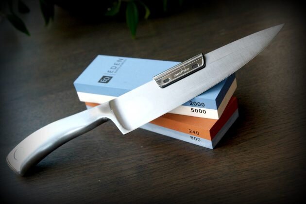 Острый нож на кухне необходим, ведь без него сложно представить приготовление пищи. Со временем лезвие перестаёт справляться с задачей, и тогда приходится прибегать к заточке. Существует масса способов, как наточить нож в домашних условиях. Но мы рассмотрим самый эффективный - это заточка с помощью точильного бруска. Как наточить нож? Прежде чем переходить к процессу затачивания, опустите точильный камень минут на 15 в масло или воду. Это продлит жизнь бруску, так как между зёрен не будут забиваться частицы стали. Заточка ножа заключается в том, что мы ставим его лезвие на точильный камень под определенным углом и проводим по нему всей режущей кромкой от пяты до кончика. Правильная заточка предполагает соблюдение трех условий: Когда выполнили основную заточку, принимаемся за шлифовку. Для этого потребуется мелкозернистый камень. Шлифовка необходима для того, чтобы выровнять поверхность и убрать заусенец. Техника при этом остаётся без изменений. Несколько полезных советов Чтобы