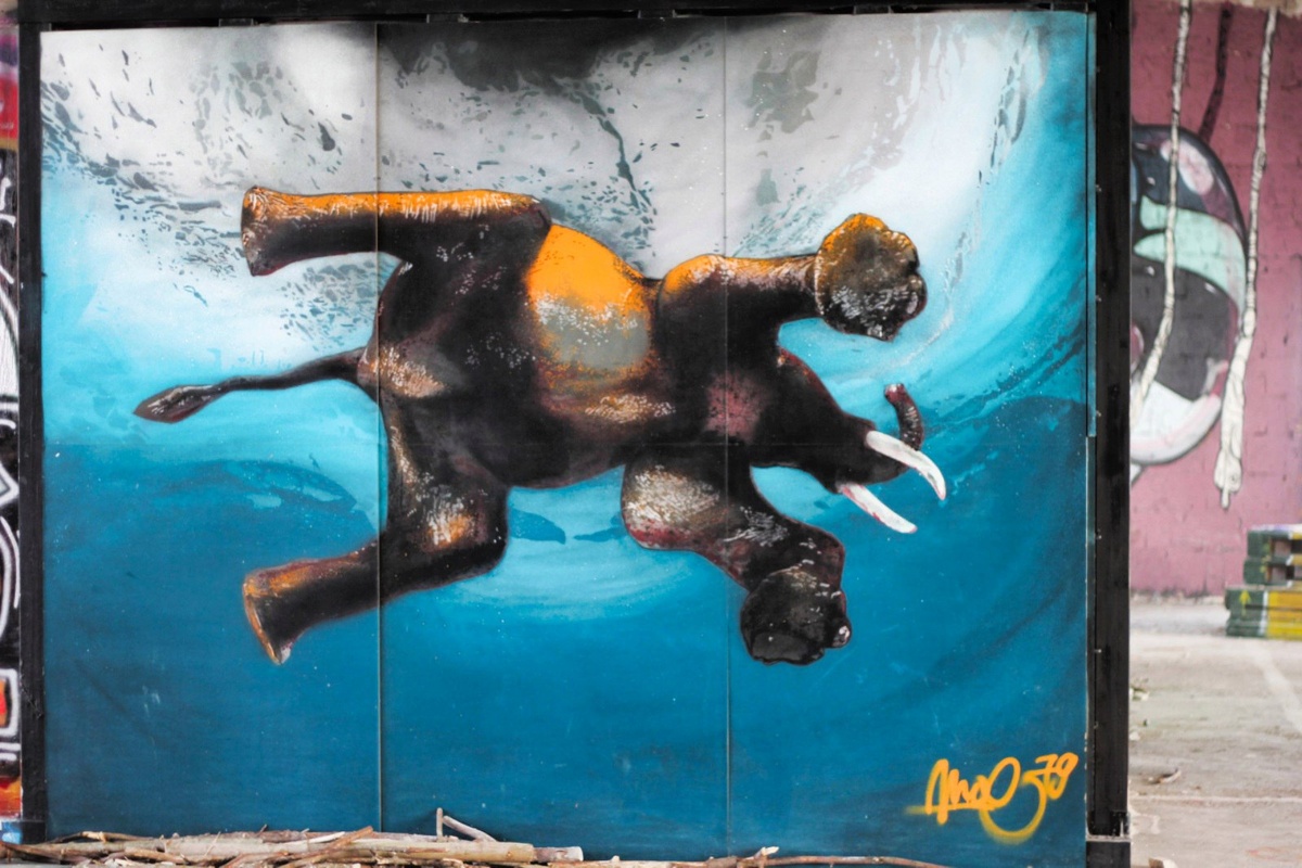 Полуразрушенные строения, бетонная кожа которых полностью покрыта разноцветными граффити-татуировками, вывернутая наружу плоть каменных перекрытий, кривые арматурные кости, севший голос, эхом блуждающий в простуженных незастекленных этажах-легких – все это создает образ поверженного титана, уничтоженного временем и человеческими дрязгами. Организм, впавший в глубокий анабиоз на неопределенный срок. Здесь словно остановилось время. Колоритный постапокалиптический пейзаж, укутанный пеленой густого влажного тумана, массивные глыбы камня, темные лестничные пролеты, нежные и хрупкие стебли плюща, уже побитые первыми морозами, замутненное солнце, изредка мелькающее в вышине – все это поражает и завораживает. Здесь я снова вспоминаю Стругацких и их «Пикник на обочине», Тарковского. Кажется, что мысли твои слышны всем и каждому, их словно под