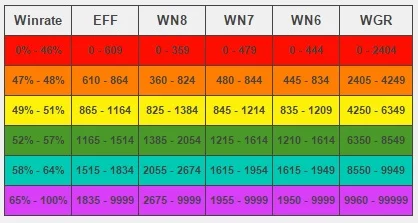 Кроме того, г-н Noobmeter любезно разместил таблицу на своем сайте, наряду с его значениями PR, для вашего сведения: http://www.noobmeter.com/tankList
