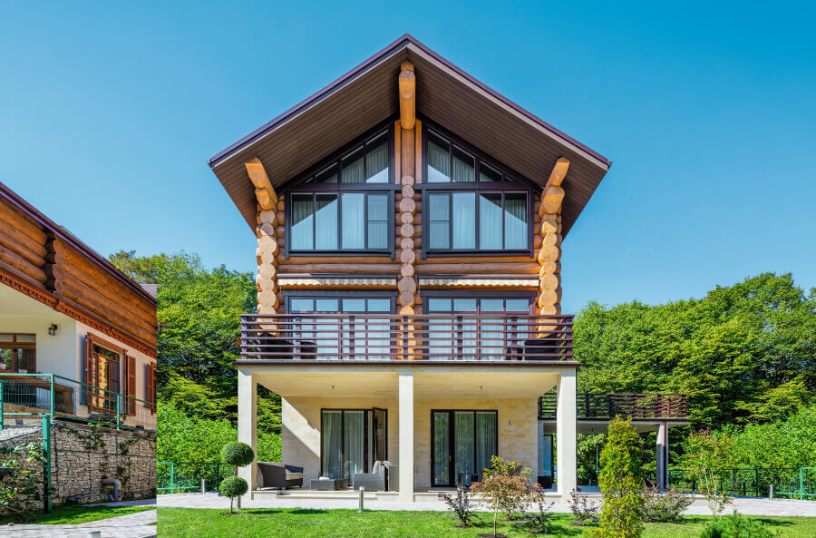 Авторы проекта: архитекторы Иван Качалов, Игорь Метёлкин Коттедж с монолитным первым и двумя верхними, сложенными из алтайского кедра, этажами находится в Сочи. Архитекторы приступили к работе над проектом, когда коробка строения была уже возведена. Стиль интерьеров дома с мотивами ар-деко подсказал дизайн московской квартиры заказчиков, оформленной авторами проекта ранее. Предполагалось, что владельцы будут приезжать в свой сочинский дом время от времени, чтобы летом отдыхать у моря, а зимой кататься на лыжах. От авторов проекта требовалось создать в нем такую же комфортную атмосферу, как и в квартире заказчиков в Москве. Архитектуру строения частично изменили. Высоту дверных проемов и размеры окон увеличили, что зрительно облегчило фасады и улучшило инсоляцию помещений. Навесы над патио при гостиной-кухне-столовой и над входной группой сл