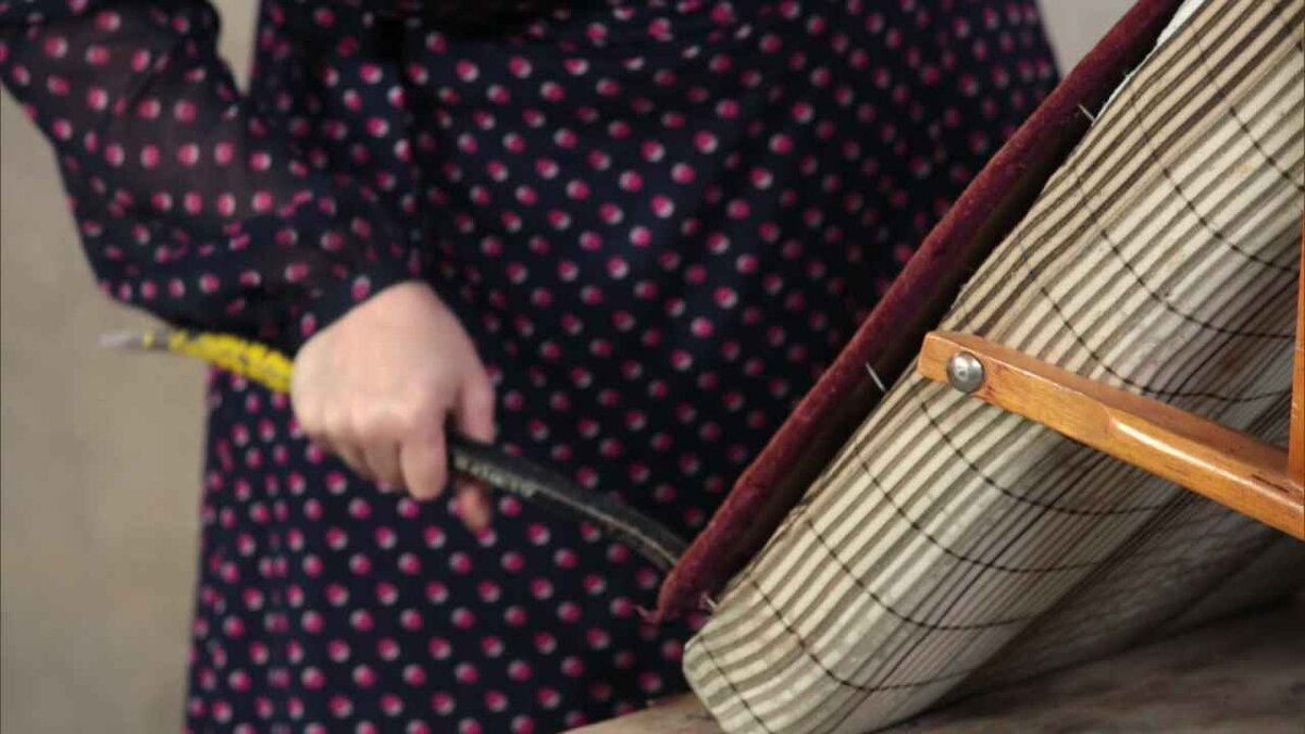 Придаём старому креслу современный облик с помощью новой обивки. С помощью гвоздодёра отделить картонный задник от самого кресла. Гайки и болты открутить гаечным ключом. Удалив все болты и гайки, разобрать кресло на части. Примерить ткань на спинку кресла. Отрезать ткань по размеру с запасом на подгиб. Закрепить ткань на задней части спинки мебельным степлером. Кусок поролона подогнать под размер сиденья ножницами. Положить поролон на сиденье. Накрыть сиденье вместе с поролоном тканью. Обрезать лишнюю ткань. Перед тем как закреплять ткань степлером, следует хорошо натянуть её: она должна довольно плотно облегать поролон. Соединить все детали кресла.