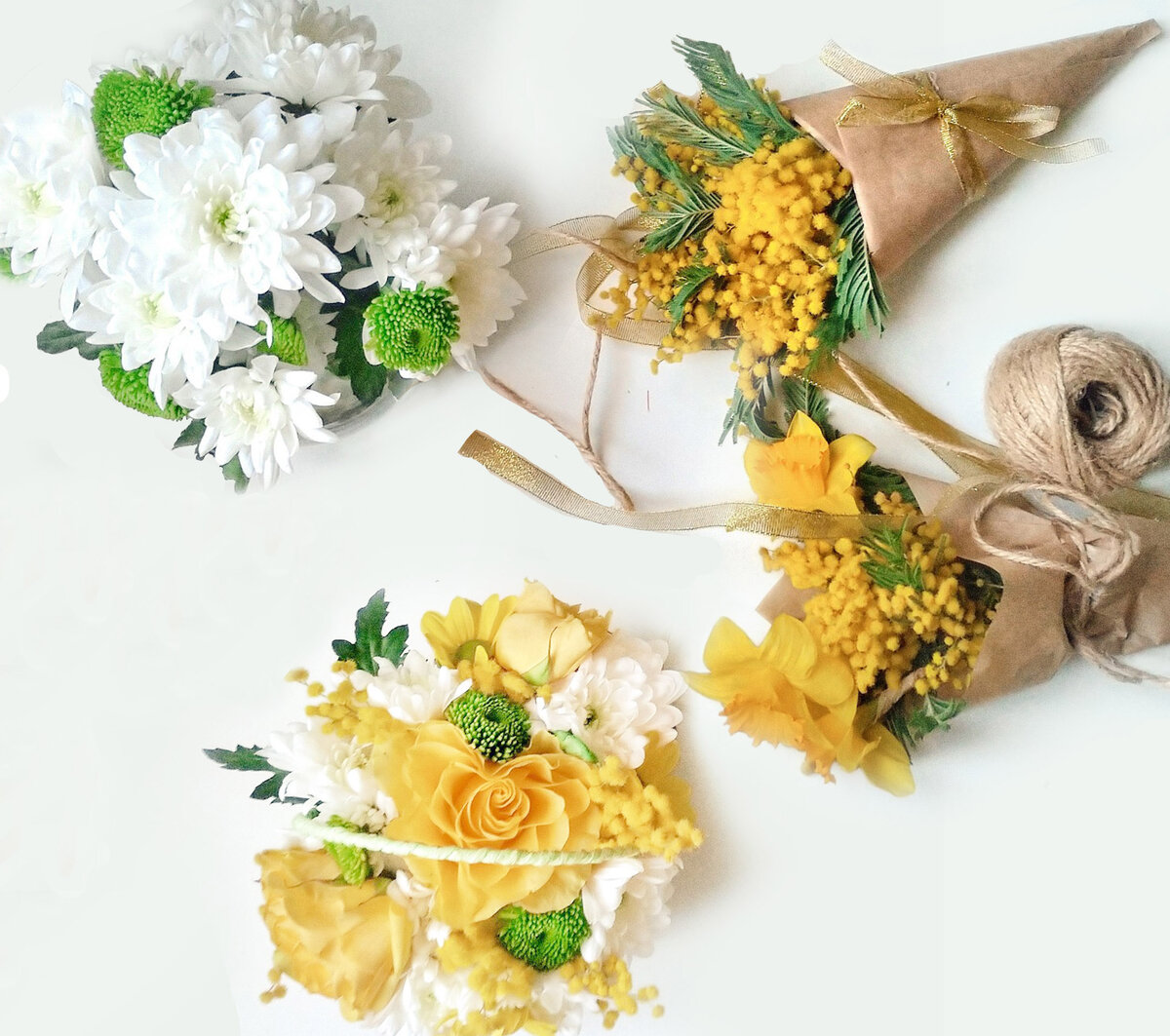 Сезон весенних цветов в самом разгаре! Предлагаю сделать весенний букет своими руками! Любая мама, бабушка будет безумная рада такому пахнущему букету. Для вас у меня несколько очень бюджетных букетов, которые не ударят по кошельку. Цветы которые я выбрала для своих букетов Хризантемы 50 рублей/ветка Мимоза Пушисты букет 100 рублей Нарциссы от 30 рублей/штука