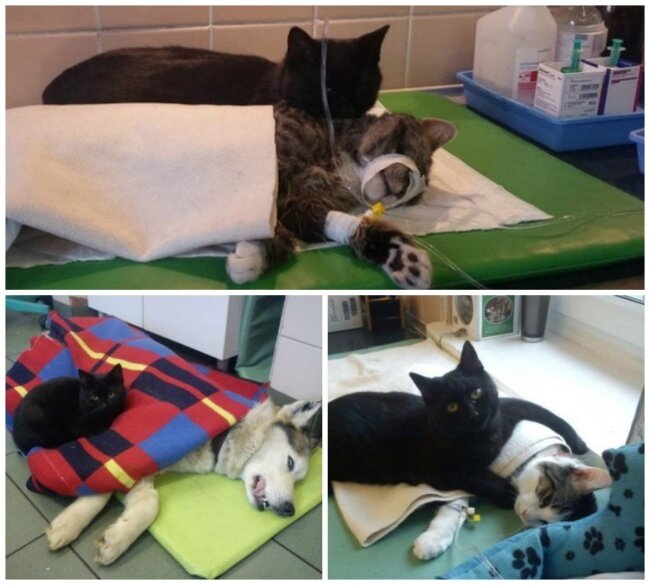 Невероятный кот-медбрат берет под свою опеку других животных в приюте