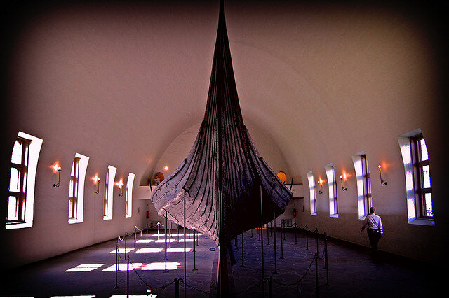 Корабли, некогда принадлежавшие знатным викингам, по праву считаются одними из самых масштабных находок археологов. Однако находят их, чаще всего уже после того, как эти корабли ("драккары") стали гробами. Каждое такое судно имеет схожую историю. Ставьте лайк и подписывайтесь на наш канал в Дзене, чтобы мы поняли: вам интересно. Тогда мы будем делать новые посты. Как проходили похороны? При жизни покойного оно, вероятно, принадлежало ему самому. Корабль вынимали из воды и ставили на суше на почетное место. Внутрь сажали / клали покойника в лучших одеждах. И, непременно, с оружием. Оно было символом свободного человека в то время, поэтому оружия не жалели. Клали в корабль мечи, топоры, копья. Затем убивали его слуг и скот, дабы те и другие переместились в царство мертвых вслед за своим хозяином и оставались там с ним навечно. Трупы также поднимали на борт. А потом сверху корабля насыпали огромный курган. Почему викингов не хоронили с доспехами? Примечательно, что оружие в погре