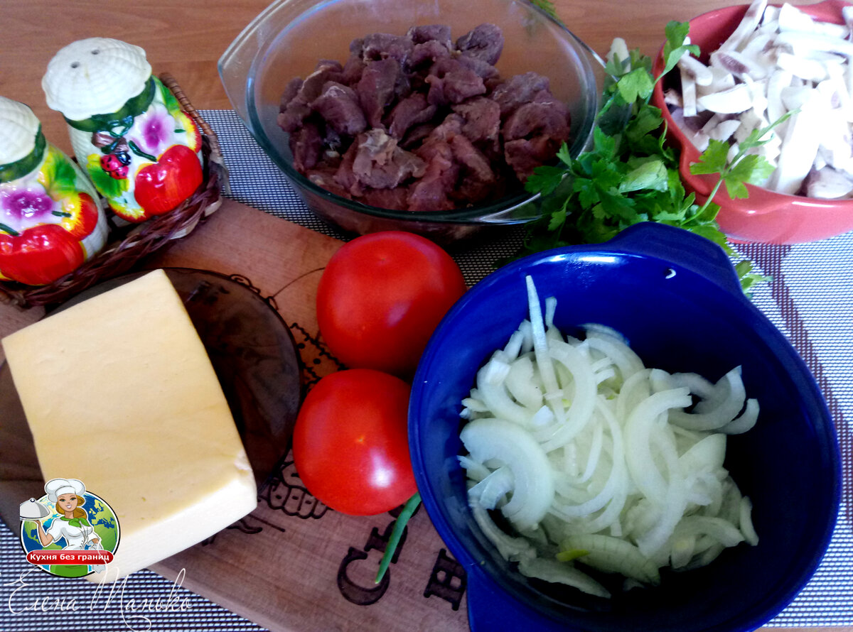 Доброго всем дня! Сегодня у меня жаркое в горшочках — беспроигрышный вариант, когда нужно встретить гостей, а времени катастрофически не хватает. Вот где блюдо — так блюдо! Приготовить можно за 15 минут ( лишь бы мясо под рукой было) и быстренько все пихнуть в печку, Красота! А пока горшочки в духовке живут своей жизнью, можно еще блинов смастерить к чаю, соленья достать из кладовки, и стол накрыть красиво и празднично! Ну да баснями соловья не кормят, и уж коли я вам пообещала, что это быстро — нужно соответствовать 😊 ! Достаем из холодильника мясо (0,5 кг), грибы ( 0,3 кг), помидоры (0,3кг), лимон (1/2 шт), сыр ( 0,2 кг) и лук (1 шт). Подготавливаю овощи: Все, готово! Можно складывать наши горшочки! Очередность слоев не принципиальна, но я всегда делаю так: картофель — мясо — лук — грибы — помидоры — картофель.