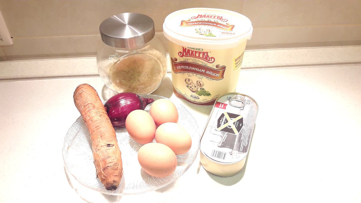 Доброго времени суток, уважаемые читатели. Сегодня хочу рассказать Вам об очень вкусном рецепте рыбного салата с рисом. Для приготовления этого салата нам понадобиться совсем минимальный набор продуктов, доступных по цене и качеству. Приступаем к приготовлению. Ингредиенты: 1) Майонез; 2) Рыбные консервы, 1 банка; 4) Яйцо, 4 шт., 5) Морковь, 1 шт., 6) Репчатый лук, 1 шт., 7) Рис, 200 гр., 8) Свежая зелень (для украшения). Приготовление: Предварительно отвариваем и охлаждаем рис, морковь и яйца. Вилкой измельчаем рыбные консервы на максимально маленькие кусочки. В данном рецепте я использовал копченую сайру в масле от "Доброфлот". Вы можете использовать консервы из любой рыбы, которая Вам нравиться. Измельченные консервы выкладываем на дно салатника, выливаем оставшееся масло из банки от консервов и тщательно перемешиваем. Мелко нарезаем репчатый лук и равномерно посыпаем на рыбу. Сверху лук промазываем слоем майонеза. Следующим слоем выкладываем рис. Рис обильно промазываем майонез