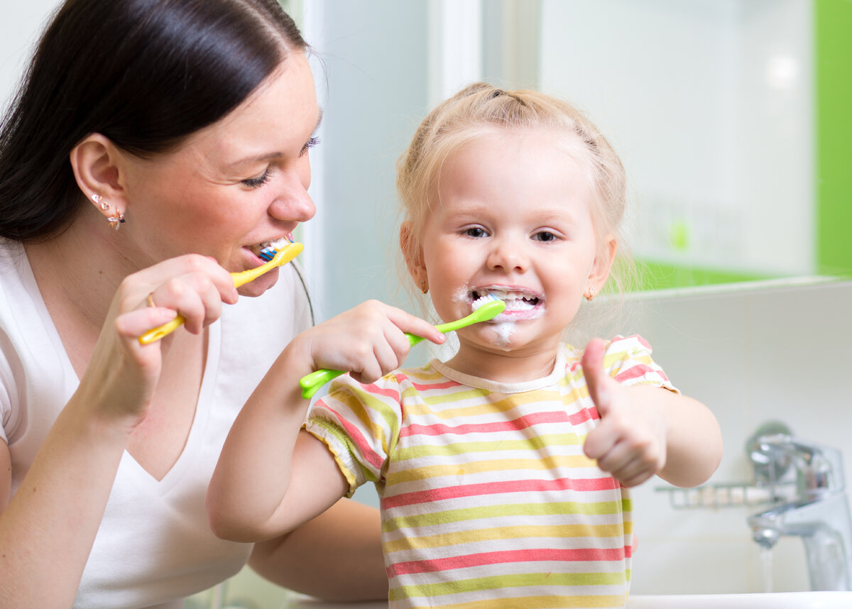 Ходите на утренние или вечерние процедуры умывания вместе. Чистите зубы и давайте это делать ребёнку самостоятельно. Дети все копируют и смотря на вас они тоже будут чистить зубки. Это очень эффективный способ.