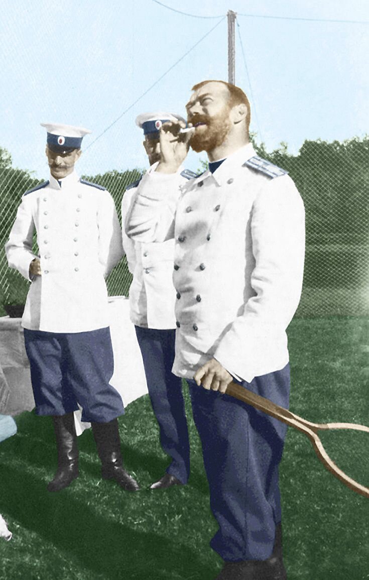 Весь дворец знал, что турецкий султан прислал Александру несколько картонов папирос, но все они были заперты под замок. Пришлось посушить на солнце лопух и тонко нарезать его ниточками. Потом догадались набрать окурков в пепельнице, крошили их в газетную бумагу, сворачивали, но выходило плохо: один конец толстый, другой — тонкий. Но это уже было опасно. Нюхали друг друга изо рта, не пахнет ли табаком? И потом, по коломенскому рецепту, жевали сухой чай. Это отбивало запах. Но, если Император Николай Второй был исправным курильщиком, то в этом были и мои семена.