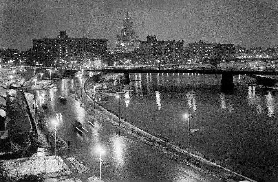 Легендарный снимок. Грановский долго искал подходящую точку съемки для своей знаменитой фотографии «Ночная Москва», или «Москва, Смоленская набережная», — этот снимок можно было часто увидеть в передачах московского телевидения. Центром композиции должен был стать высотный дом, и в поисках подходящего ракурса Грановский по очереди просил пустить его в квартиру жителей восьмиэтажного дома на набережной. Вид с четвертого этажа убивал мосты, c восьмого — давил излучину и заставлял дома казаться ниже. Балкон на шестом этаже подходил лучше всего, но теперь оказалось, что не подходит погода: мокрый асфальт добавил бы снимку бликов и контрастов. Первый осенний снег стал большой удачей Грановского: его белая линия выразительно подчеркнула поворот реки. Журнал «Советское фото», август 1965 г.