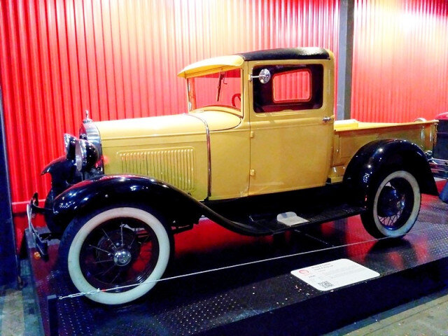 В 1903-1904 гг у Форда уже была модель с индексом А, выглядевшая как безлошадная карета. А вторая модель А пришла на смену модели Т, производившейся на протяжении 18 лет. Выпускалась модель А в самых разных вариантах: Купе (Standard и Deluxe), Бизнес-Купе, «Sport Coupe», «Roadster Coupe» (Standard и Deluxe), кабриолет, фаэтон (Standard и Deluxe), «Tudor» (Standard и Deluxe), «Town Car», «Fordor» (2-окна) (Standard и Deluxe), «Fordor» (3-окна) (Standard и Deluxe), «Victoria», универсал, такси, пикап и др. В музее, как можно заметить, представлен автомобиль с кузовом пикап. Благодаря сравнительно низкому ценнику, модель пользовалась спросом, так что за четыре года производства (с 1927 по 1931) было собрано почти пять миллионов автомобилей.