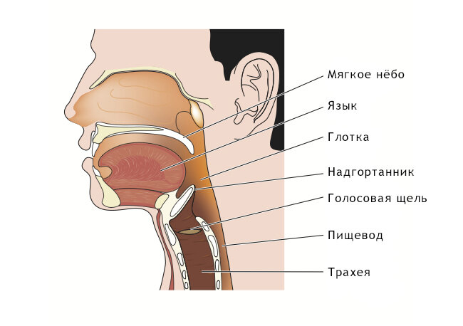 - Присутствуют миндалины ( состоят из лимфоидной ткани).
