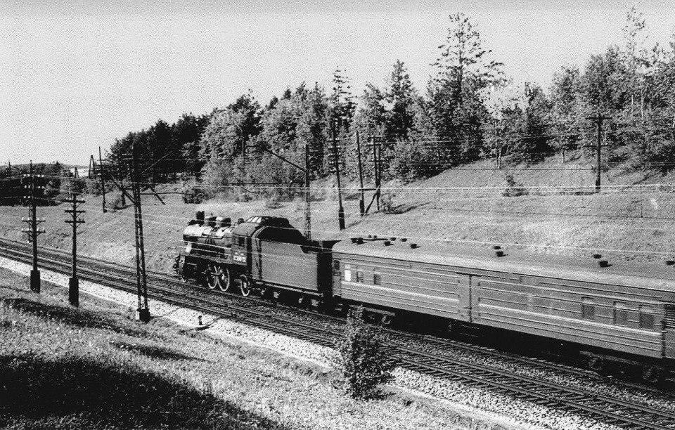 Окрестности Внуково и Переделкино. 1950-е гг…Один из самых красивых, живописных железнодорожных перегонов в окрестностях Москвы — участок между станциями Солнечная и Внуково Киевского направления. Этот восьмикилометровый отрезок многие любовно называют макетным перегоном. И действительно — живописные переделкинские холмы, S-образные кривые, каменные мосты через Сетунь, стройный лес на подступах ко Внуково, заходящие на посадку самолеты, уютные старые дачки у полотна. Железнодорожная идиллия, одним словом. Известный любитель железных дорог А.С.Бернштейн на рубеже 40-50-х годов побывал на этом перегоне, сделав ряд ценнейших фотографий. За что ему огромное спасибо.