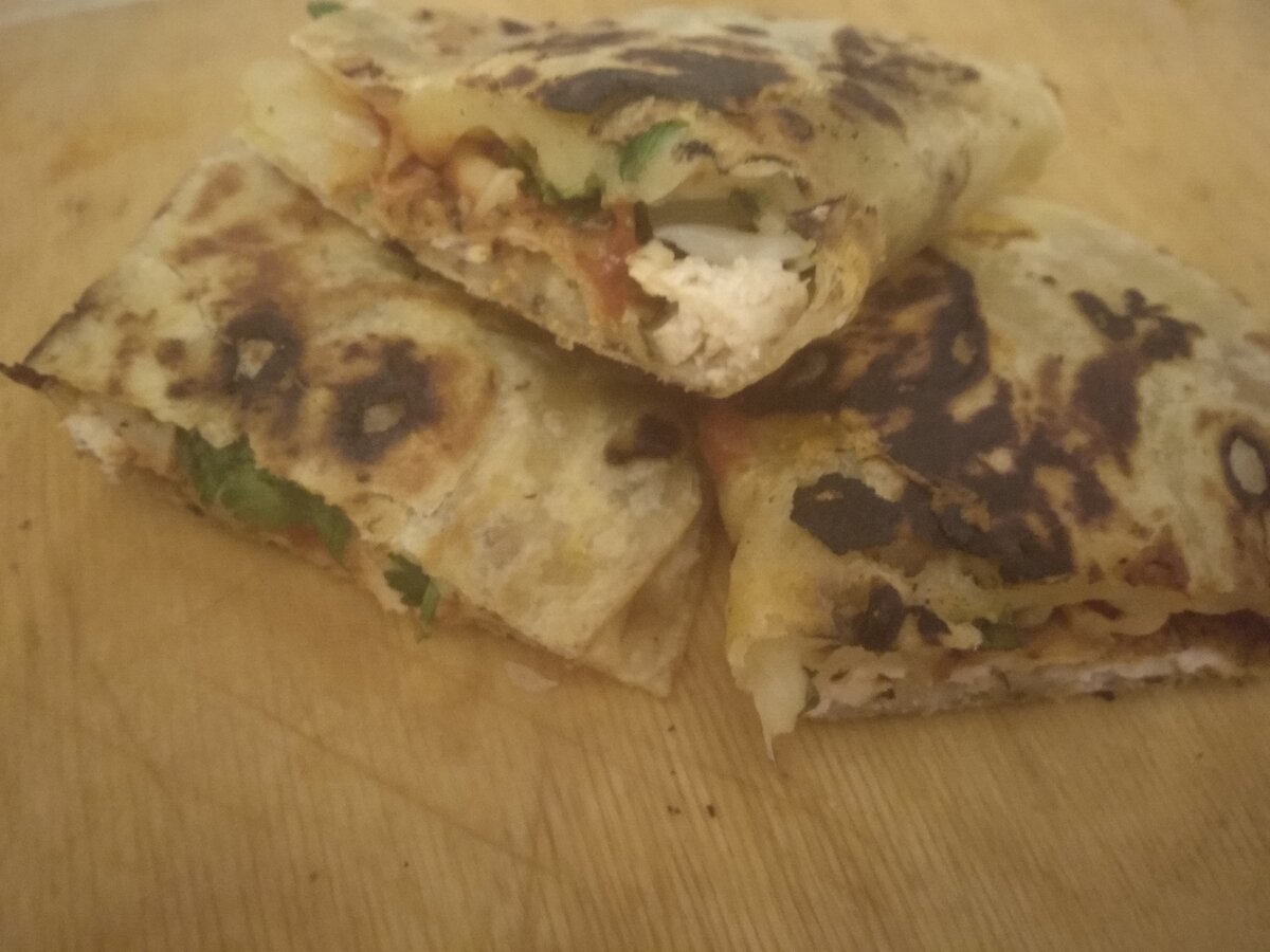 Кесадилья с курицей, сливочным сыром и соусом BBQ