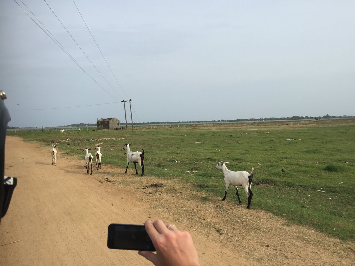 Через несколько дней мы все-таки решили поехать в направлении Сьямбаландува в соседние города, поглядеть что творится внутри острова. Мы нашли заветный поворот на магистраль и по карте обнаружили, что часть пути проходит через национальный парк "Лахугала". Мы были взволнованы: ведь это так интересно проезжать по дороге через национальный парк с тысячами диких и опасных животных. В итоге сразу на въезде мы наткнулись на огромного варана, переходившего дорогу.