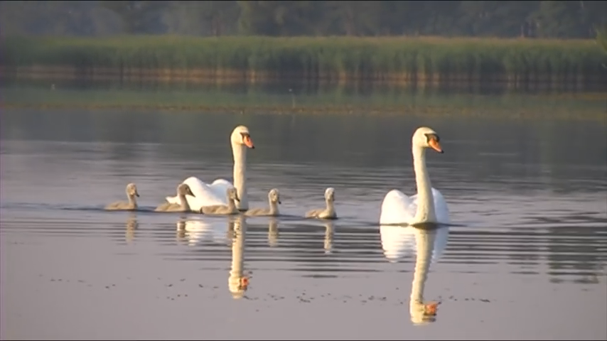 Белые лебеди В Этом видео показано как семейство белых лебедей живут и кормятся на озере !