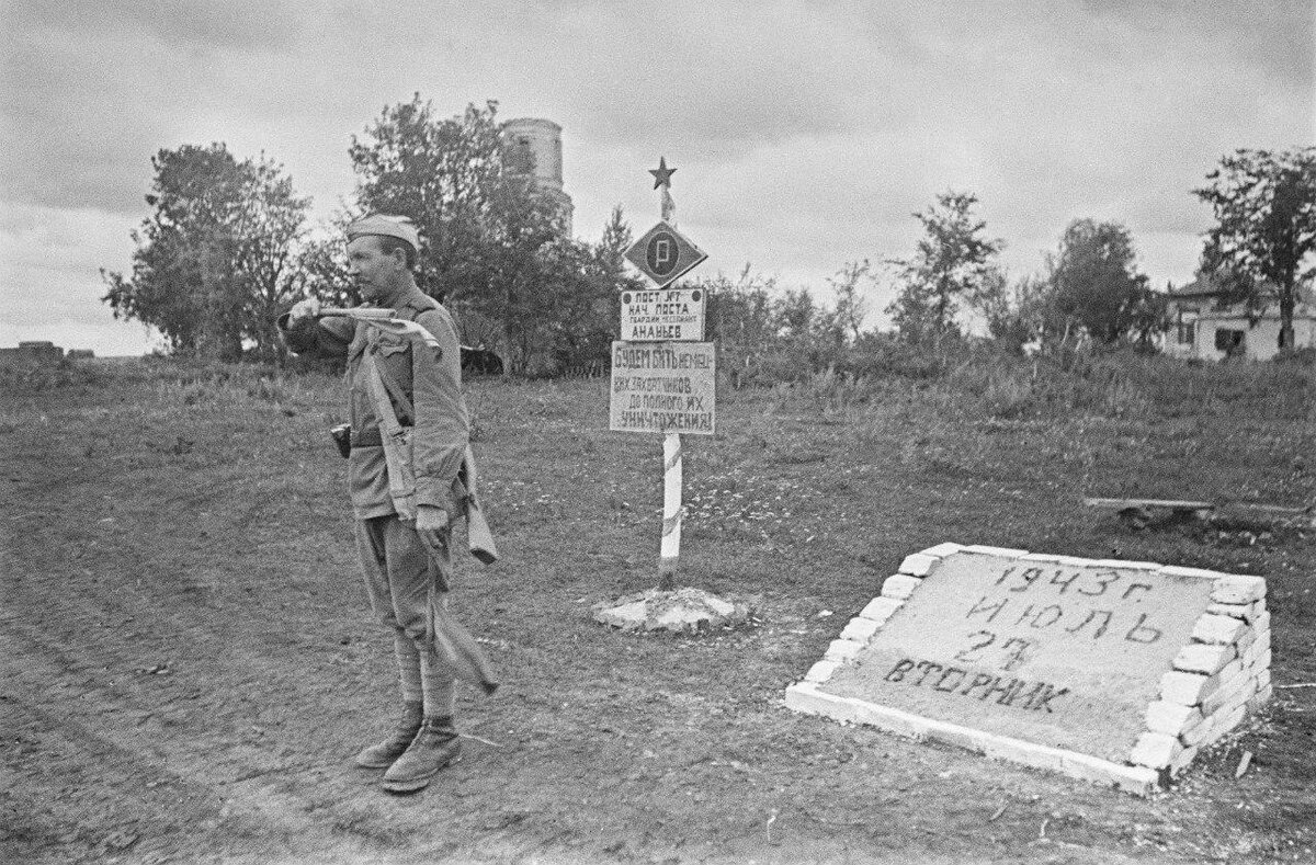 Советский солдат-регулировщик на посту. 27 июля 1943 года