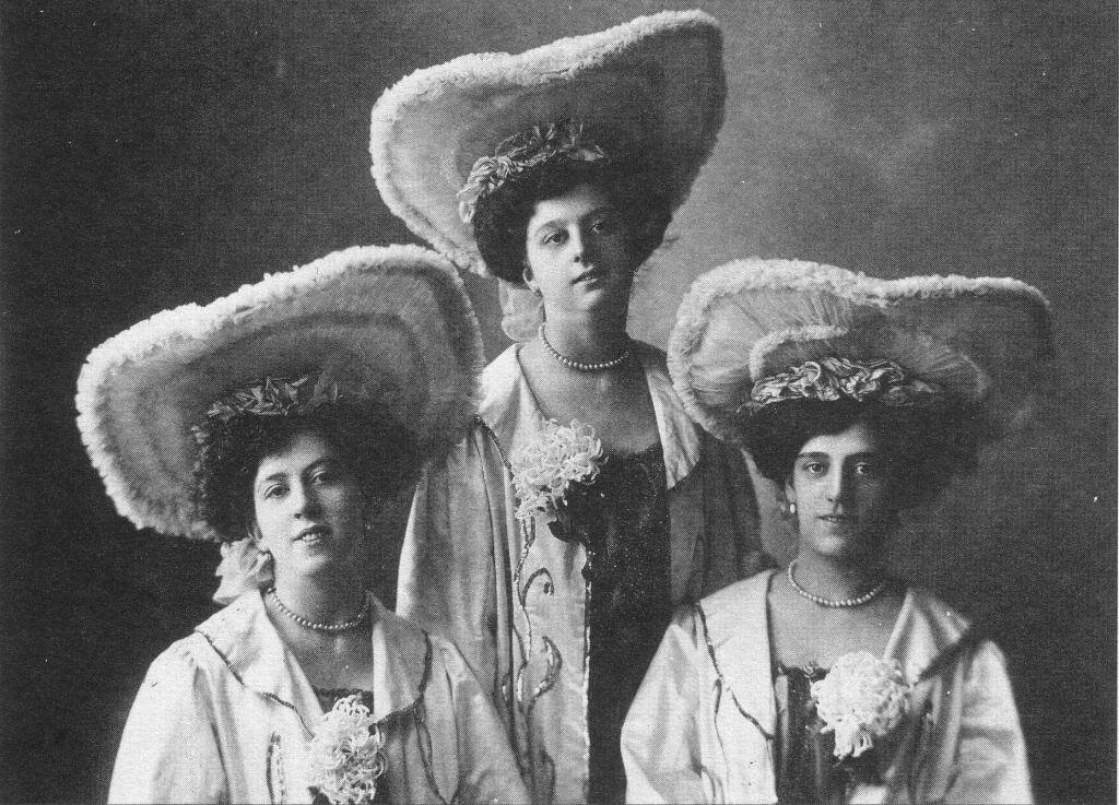 «Нас чуть ли не умоляют вновь обратить внимание на упрямых дам, являющихся в театры в шляпах-башнях с целыми то фруктовыми, то овощными садами и огородами, то столь высоких и широких форм и фасонов, что положительно становится невозможно видеть происходящее на сцене...» Так пишет издание «Петербургский листок» в 1888 году, но судя по фотографии, данной ниже, к 1910-м гг. положение ничуть не изменилось. На какие только жертвы ни шли тогдашние модницы, чтобы «сделать красиво»! Мужчинам тут пришлось проще, особенно военным: фасон и цвет мундиров, форму головных уборов им определяли государи императоры. (Некоторые цари даже сами набрасывали рисунки погон или значков). Специальные приказы были и насчет ношения бород и усов, речь тут не только о петровских временах. Гражданские же по мере возможности все-таки следили за модными веяниями. Хотя мужских модных журналов было немного, подсказку можно было найти в жизни. При Николае I в Петербург приезжал герцог Веллингтон из Англии. Было замечено