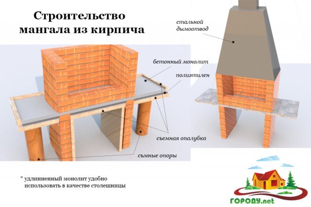 Стандартных «коробок» для жарки шашлыков достаточно в любом гипермаркете. Но собрав мангал своими руками, можно дать волю фантазии. Полет мысли разбегается от прямоугольной четырех ножной конструкции до стационарной печи со встроенным барбекю, коптильней, русской печью и грилем. Итак, к делу. Немного расчетов мангала своими руками. Есть параметры мангалов, которые гарантируют лучшее запекание кулинарных шедевров. Глубина. Сантиметров 15 достаточно для того, что бы хорошо приготовить шашлык, его не пересушивая. С увеличением высоты для жара требуется больше слоев угля. Ширина/длина. Площадь мангала соответствует объему приготовления за один раз. Длина 80-100 см вмещает 10 шампуров, под размер которых подбирается ширина мангала (30-50см). Простой расчет гарантирует, что жар не уйдет впустую. Важно! Место для мангала выбирается с учетом преобладающего ветра, подальше от плодоносящих деревьев и кустарников – они не любят едкий дым. Нюансы металлического мангала своими руками. Минимальные