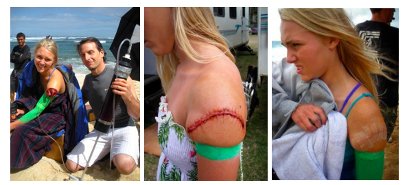 Почти восемь лет назад, во время утренней морской прогулки, сёрфингистка Бетани Гамильтон подверглась нападению тигровой акулы, потеряв не только руку, но и почти 60 процентов крови. Удивительно, но она осталась жива. Недавно вышедший фильм Soul Surfer рассказывает историю Бетани с использованием различных приёмов, созданных режиссёром по спецэффектам, Марком Гарбарино. Для этого он разработал серию протезов, имитирующих потерю Бетани руки и её заживление.