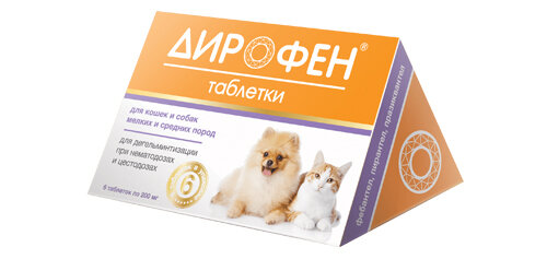 - Дирофен 200 мг – для собак (мелких и средних пород) и кошек;