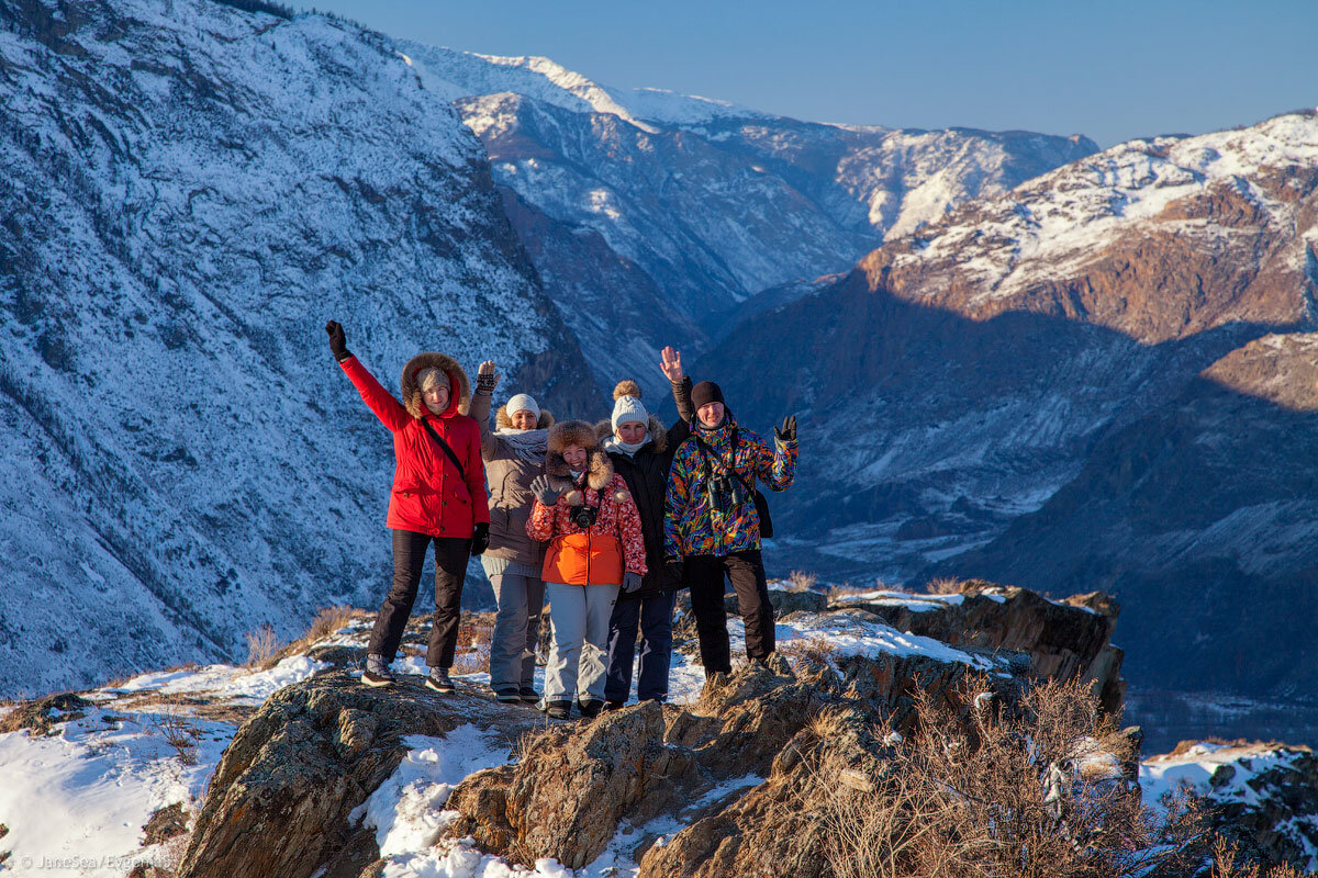 День пятый. На Кату-Ярык. Одна нога здесь, другая там. В наши планы не входило спускаться в долину Чулышмана, зимой она совсем не выглядит не то, чтобы дружелюбной, но даже приветливой. И без того узкое ущелье плохо пропускающее солнечные лучи при коротком световом дне кажется и вовсе угрюмым – ни посмотреть, ни поснимать толком. Мы выехали из Кош-Агача и планировали доехать до Акташа без остановок, но все пошло не так. Это утро решило все за нас, сговорившись с солнцем, облаками и висящим на границе неба и земли Северо-Чуйским хребтом. Наш маленький караван из двух машин вырулил на прямую у мостика через речку Кызыл-Таш и не смог продолжать движение дальше, нас парализовало от увиденного. Утреннее солнце, не смотря на уже совсем не ранний час, низко висело слева и косыми мягкими лучами подсвечивало острые пики хребта, нежно укутанные паутинкой пухового платка облаков. Дорога на Кату-Ярык идет от Акташа по реке Чибитке, по Улаганскому нагорью мимо бесчисленных и зачастую безымянных