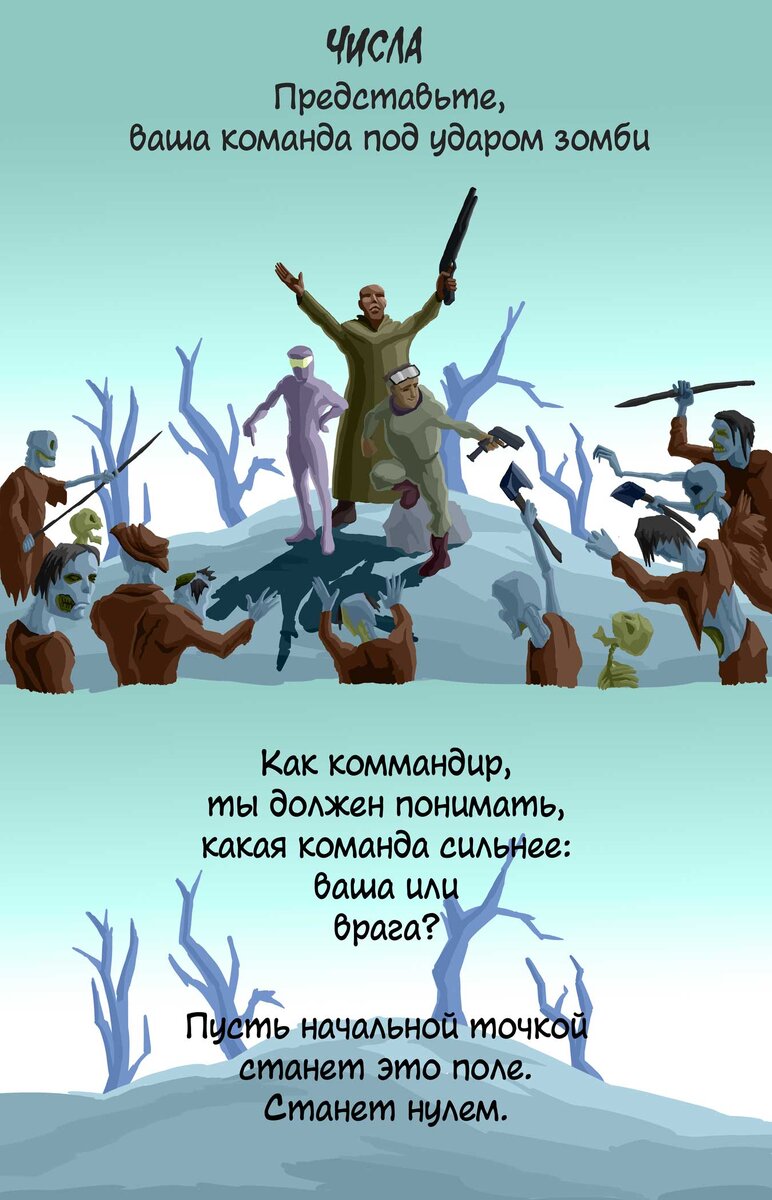 Немного базовых понятий о числах, количестве и живых мертвецах. По сути, поле, герои и зомби - это такой эквивалент группы в математике. А группа -- это такое базовое понятие в математике, с чего все начинается.