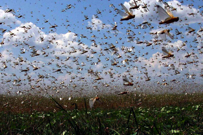 8. Особо крупная саранчиная стая может достигать суммарной массы в несколько тысяч тонн. Столько же она съест за сутки всяческой зелени.