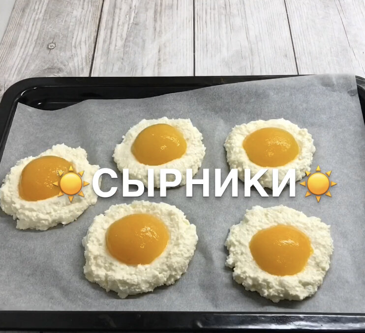 Смотрите, какой красивый и простой завтрак можно приготовить😍 Как Вам такие сырники?☺️ От Вас времени потребуется: максимум 10 минут 👌 время нахождения в духовке я не беру в расчёт, так поставили на 20 минут, и занимаетесь своими делами 😉 Сырники «Глазуньи»😍 На 5 штучек нам потребуется: 200 грамм творога (я брала пастообразный в брикетах); 1 яйцо; сахар - по вкусу; мука - 35 гр (2 ст.ложки); 5 половинок абрикосов. Приготовление: Творог соединяем с яйцом: Добавляем сахар и перемешиваем: Затем добавляем муку: Хорошо перемешали до однородного состояния. Столовой ложкой перекладываем творожную массу на противень, предварительно застеленный бумагой для запекания. Придаём более округлую форму. В центр кладём половинку консервированного абрикоса. СЛЕГКА вдавливаем в творожную массу. Убираем в разогретую духовку (190 градусов) на 20 минут. Готово! Вот такие простые, вкусные и интересные сырники у нас получились: Приятного аппетита!