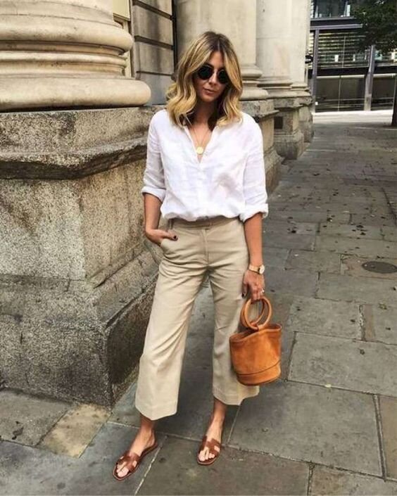 Палитра бежевого цвета включает в себя множество оттенков и поэтому выбор тона должен быть осторожным. Обусловлено это тем, что некоторые оттенки, например, телесный, просто сливаются с цветом кожи, а наряд при этом выглядит нелепо. Также стоит обратить внимание на фасон одежды, а выбор подходящей модели зависит от особенностей фигуры и сезона. При этом сочетать джинсы или классические брюки бежевого цвета можно с различными оттенками, создавая стильный и красивый образ в любом стиле. Для достижения этой цели нужно подобрать основной тон бежевого, а также учесть некоторые правила, обеспечивающие безупречный внешний вид. Цвет и фасон Создавая красивый комплект с бежевыми брюками, важно учитывать фасон изделия. Также моментом, достойным внимания, является ткань, из которой изготовлена одежда. Например, джинсы хорошо сочетаются с различными материалами, а вот теплые и толстые брюки подходят для холодного сезона и их можно носить с пальто. В любом случае нужно учитывать и стиль одежды, а