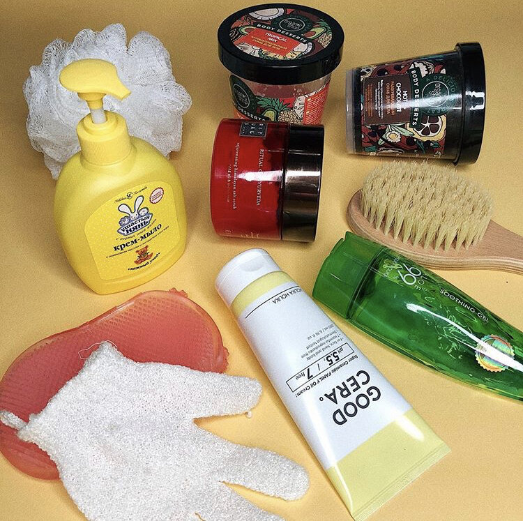 ⠀ ♥️ ⠀ ✔️Крем-мыло для тела от «Ушастый нянь» Ещё есть всякие гели для душа, но любимого нет, пользуюсь всеми. ⠀ ✔️Скраб разогревающий и антицеллюлитный от @organicshop_ru Хорошо растираем по коже, потом прям горит, кожа становится нежная 🔥 ⠀ ✔️Соляной скраб от @ritualscosmetics Это просто огромная любовь, спасибо Эле, что когда-то заставила купить. В России его кажется нет, цена выше среднего. Но это капец какой потрясающий скраб, после него на коже холодок, она увлажнена и такая нежная 🤤 Если увидите, не жалейте - берите. ⠀ ✔️Щётка для сухого массажа от @thebodyshoprussia Все пестрит огромным количеством щёток, я взяла самую доступную - пришёл в магазин и купил. Хорошая, удобная, кожа после неё мягенькая, мне нравится. ⠀ ✔️Алоэ от @holika_holika_russia Это самая незаменимая вещь как для тела, так и для лица. Увлажняет, заживляет, после солнышка, для всего 👍🏼 ⠀ ✔️Крем Good Cera от @holika_holika_russia Хороший увлажняющий крем в большом объёме. ⠀ ✔️Ну и разные мочалки, силиконова