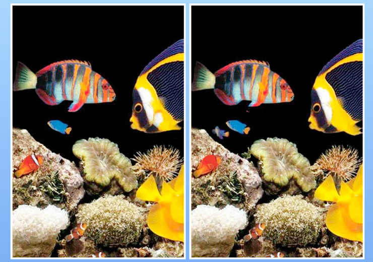 На картинке с рыбками мы замаскировали несколько деталей. Сможете найти их все? Итак, перед вами 2-е картинки с 7-ю отличиями,ваша задача найти их все! Присмотритесь и найдите все отличия,желаем удачи! : Если уверены, что нашли все 7-мь отличий, то сверьтесь с правильным ответом ниже↓ ↓ ↓