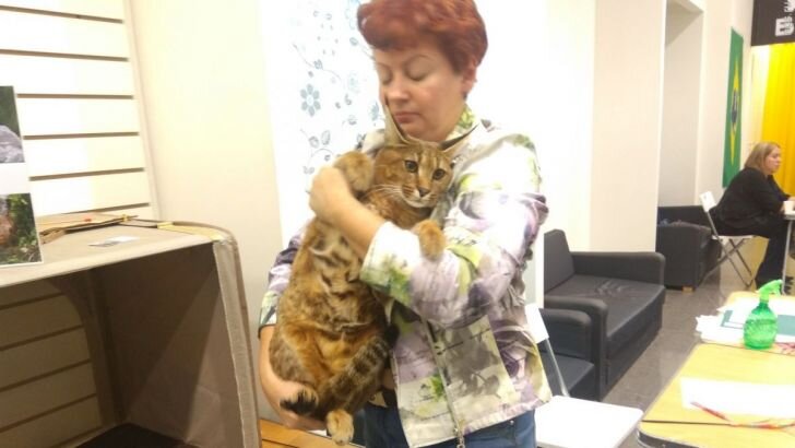 Так вот, чтобы обзавестись такой уникальной зверушкой женщина целенаправленно продала машину и купила кота. Сколько эта 9-ти киллограмовая туша кушает денег в день женщина умолчала, но вполне понятно, что сумма тоже не слабая набегает например за год.