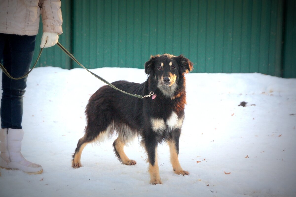 Майе 2 с хвостиком, рост в холке 48 см, по колено или чуть ниже, стерилизована, приучена к поводку и выгулу, ест сухой корм, хотя и от остального не откажется. Лояльна и к собакам, и к кошкам. Очень нужен человек, который не будет требовать от неё сверхдостижений, а будет любить и принимать такой, какая она есть.