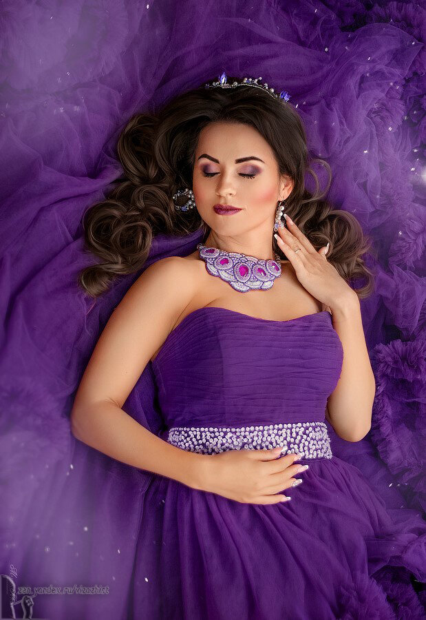 Продолжая цикл постов "Будни визажиста",хотелось бы вспомнить о том, что уже совсем скоро к нам придет пора душистой раскидистой сирени. В прошлый раз я рассказывала о проекте "Гейша" в цветущем саду, сегодня расскажу о проекте "В сиреневых облаках". На этот раз модель уже была определена, так же как и фотограф, который приехал к нам в город за 400 км. Идея была связана именно с кустами сирени, плюс обязательно огромное воздушное платье-облако. К сожалению в нашем городе при достатке таких платьев, мы так и не смогли найти нужный цвет. Были красные, белые, черные, но только не сиреневые. Фотограф приняла беспрецедентное решение взять это платье в Москве, и привезти его с собой на поезде. Чтобы вы понимали, платье просто огромное, с большим количеством фатиновых юбок. Самая большая сложность была в том, чтобы модель перемещалась в таком платье по траве. Несколько раз мы высвобождали из юбок многочисленных жуков, бабочек, вытаскивали палочки, травинки, и прочие элементы прекрасной прир