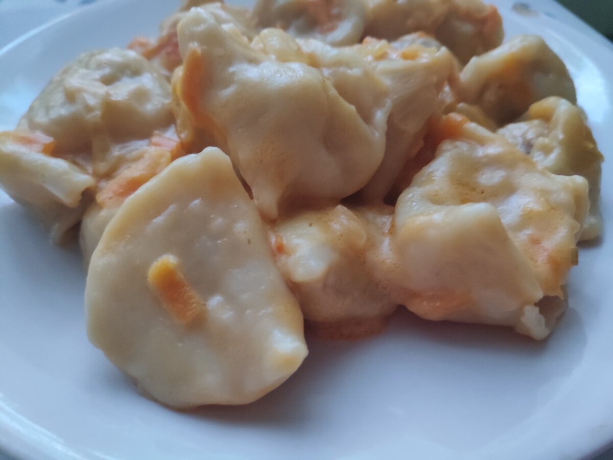 Предлагаю вам необычно приготовить пельмени. Получается оригинально, сытно, вкусно, да и пельмени не слипаются. И у плиты стоять не надо. Побросали все в мультиварку и пошли заниматься своими делами. Понадобится: 600-700 гр пельменей, 2 луковицы, 1 морковь, 200 гр сметаны, 2 столовые ложки кетчупа, соль, перец, лавровый лист. Обжариваем на растительном масле в чаше мультиварки мелко нарезанный лук и тертую на терке морковь, до золотистого цвета. Добавляем в чашу замороженные пельмени. Далее добавляем сметану, кетчуп, заливаем водой (как на фото, чтобы пельмени не сильно были в воде). Солим, перчим, добавляем лавровый лист. Все очень хорошо перемешиваем. Выставляем в мультиварке режим "Тушение" на 1 час и закрываем крышку. После все перемешиваем и подаем на стол. Приятного аппетита!