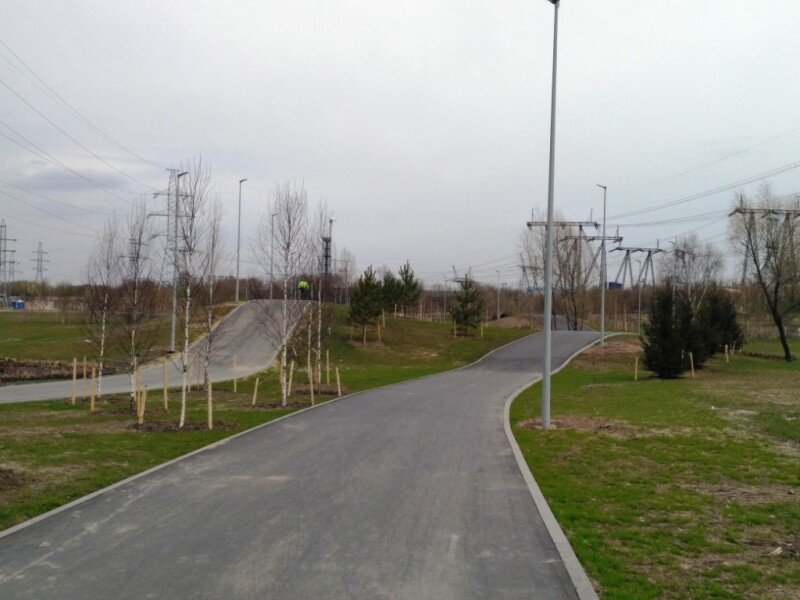 Правда, теперь 2-й день коленки болят от такого отдыха) Сначала хотела только по Кузьминкам прокатиться, но потом решила доехать до парка 850-летия Москвы и нашла там много чего нового. Ближнюю к Кузьминкам часть парка облагородили, даже сделали велодорожку, длиной, правда, километра 1,5, но хоть так. Дальше пришлось играть в поезд, и ехать ты-дынь-ты-дынь по плитке, но потом я обнаружила офигенную лыжероллерную, вернее, как потом прочитала, биатлонную трассу. Длинная, широкая, асфальт ровненький – красота.