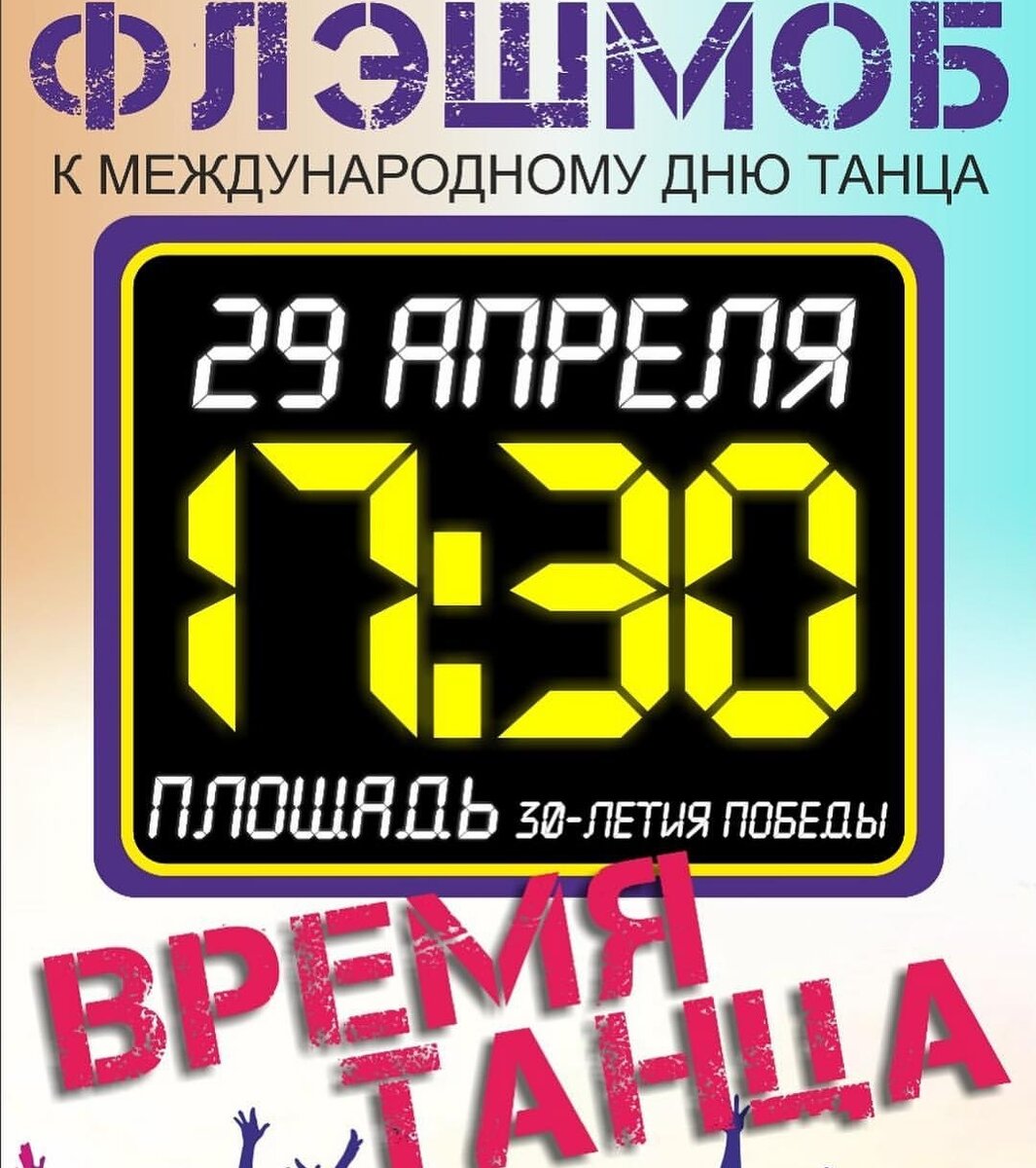 «Время танцевать»: Белогорцев приглашают принять участие в массовой акции Массовая акция «Время танцевать» пройдет 29 апреля. Она посвящена Международному дню танца. Флешмоб будет развернут на нескольких площадках города... http://belogorck.ru/novosti/segodnya-v-gorode/35963-vremya-tantsevat-belogortsev-priglashayut-prinyat-uchastie-v-massovoj-aktsii