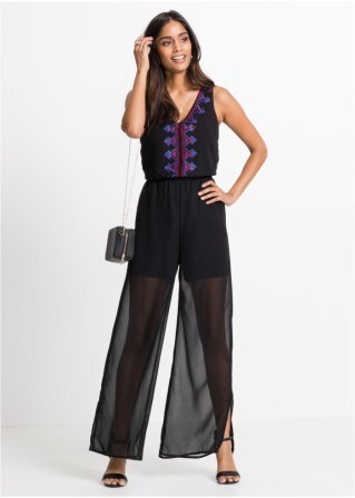 Искала себе нарядную вещь для вечерних летних прогулок. Чтобы и по набережной пройтись, и в ресторан зайти. Заказала на bonprix стильный комбинезон. Предупреждаю сразу, цена не самая низкая! Но у меня не было цели сэкономить. Люблю платья и комбинезоны, потому что не нужно выбирать подходящее сочетания верха и низа. Купил одну вещь и образ готов! А комбинезоны по многим параметрам удобнее платьев: они подчеркивают все плюсы фигуры и при этом не задираются. Давно покупаю вещи на bonprix, довольна соотношением цена-качество. Знаю, что покупка в этом магазине – это не кот в мешке (именно такое сравнение у меня возникает при заказе с али). Если на bonprix я выбираю размер S, то я знаю, что мне придет моя эска. Вещи не маломерят и выглядят как на фото. Мои параметры: 89-63-95 и рост 165 см. В плечах кардиган сел нормально, нигде не давит. Штаны (если их можно так назвать) немного длинные, но я ношу с каблуком, поэтому нормально. Внизу небольшой разрез, но он не играет особой роли и, скорее