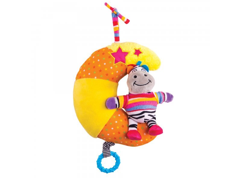 Еще одним бесспорным плюсом мобиля является его функциональность. Например, зебру легко можно отсоединить от месяца и использовать в качестве отдельной игрушки. А сам месяц может послужить в качестве удобной мини-подушки во время массажных процедур.